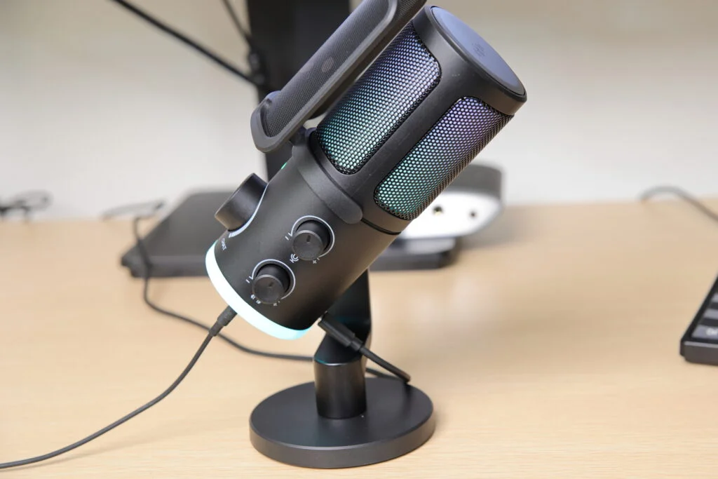 AM6は光るゲーミングマイクですが、RGBの発光表現が落ち着いているためそちらに目が行ってしまうことはありません。