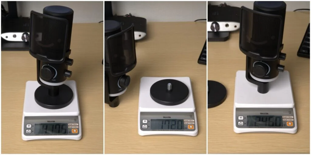 マイクとしては軽いのでマイクアームに取り付ける際も余裕があります。