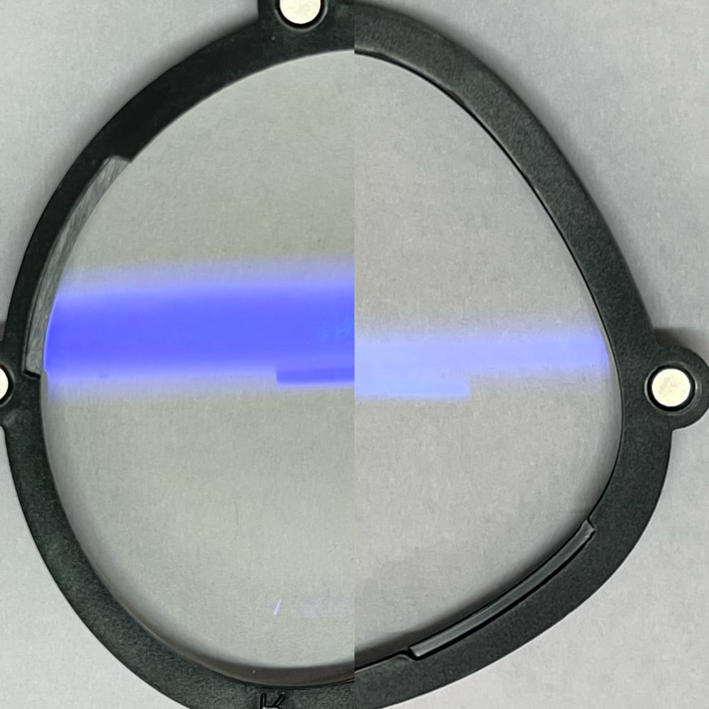 視感度反射率0.19%で、ディスプレイの光がレンズで反射することによるグレアやゴーストの発生を抑えます。暗い場面の多いVRコンテンツで効果を発揮するため、まさに「VRのためのコーティング」だと言えます。